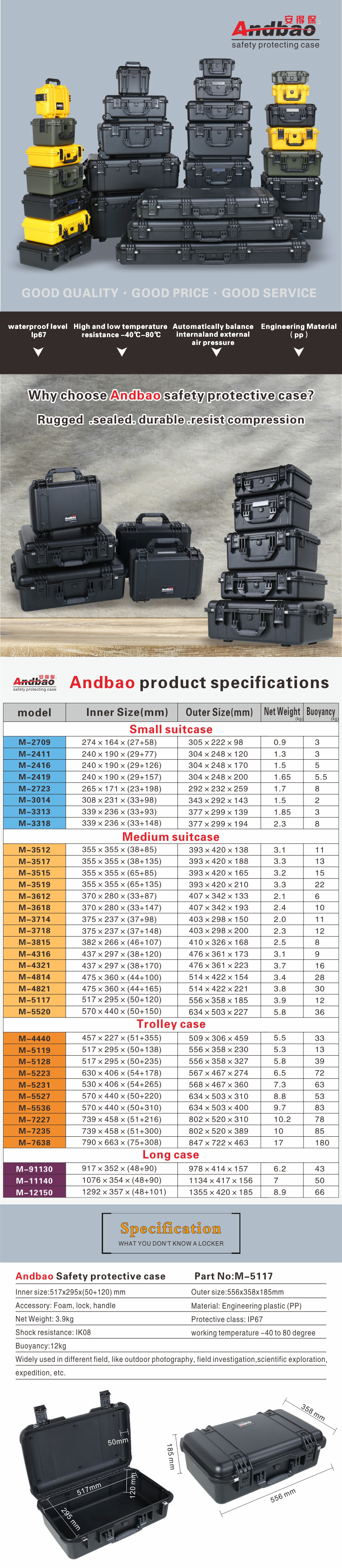 • Inner size:inner size:517x295x(50+120)mm