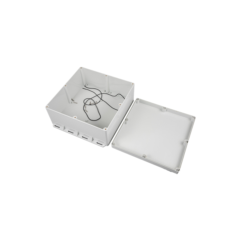1.盒体平均厚度3mm,冲击强度IK07,上盖有两种形式:透明与不透明 2.可选的塑料挂脚,亦可通过盒体低部的安装孔直接固定于墙面 3.盒体与盒盖以8只不锈钢螺钉固定 4.硅橡胶密封条 5.内部有供线路板或DIN轨道元件安装的凸台 |