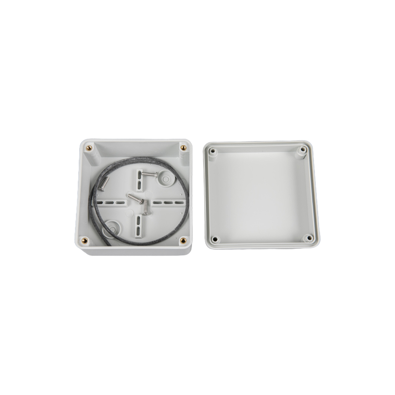 1.盒体平均厚度3mm,冲击强度IK07,上盖有两种形式:透明与不透明 2.可选的塑料挂脚,亦可通过盒体低部的安装孔直接固定于墙面 3.盒体与盒盖以四只不锈钢螺钉固定 4.硅橡胶密封条 5.内部有供线路板或DIN轨道元件安装的凸台 |