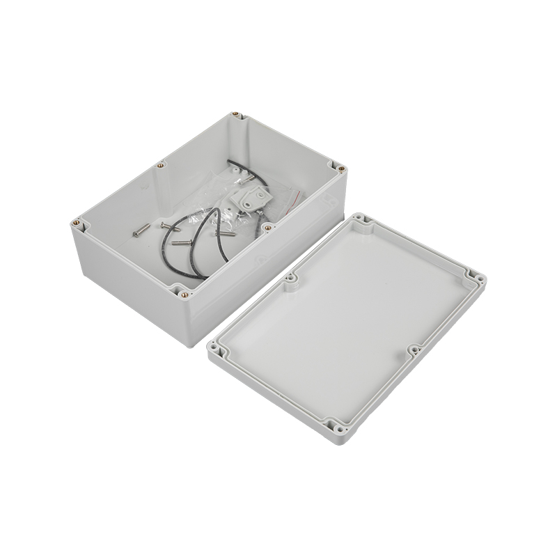 1.盒体平均厚度3mm,冲击强度IK07,上盖有两种形式:透明与不透明 2.可选的塑料挂脚,亦可通过盒体低部的安装孔直接固定于墙面 3.盒体与盒盖以6只不锈钢螺钉固定 4.硅橡胶密封条 5.内部有供线路板或DIN轨道元件安装的凸台 |
