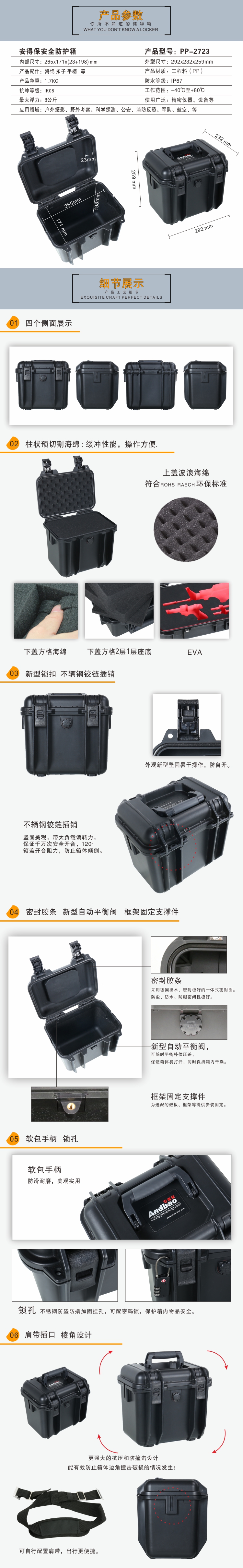 • 尺寸:内尺寸:265x171x(23+198)mm